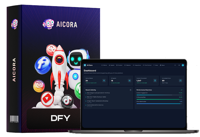 We deliver your complete AICora DFY setup within 7 days of your order. That includes your fully configured AI-powered social media agency, 10 custom AI Social Media Managers, branded content calendar, pre-loaded campaigns, platform integrations, and onboarding setup for your first 5 clients. Everything will be ready for you to start signing clients and scaling right away.