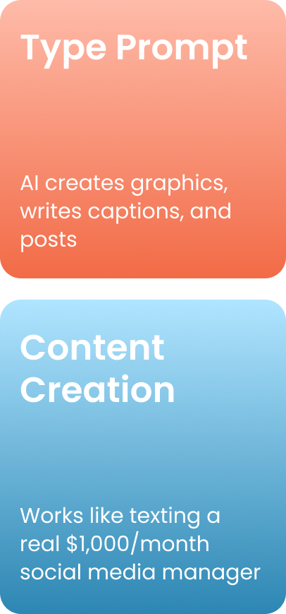 Your subscribers don’t need to know design, copywriting, or video editing. They simply chat with their AI manager just like texting a real social media assistant and instantly get posts, images, videos, and captions created and published.