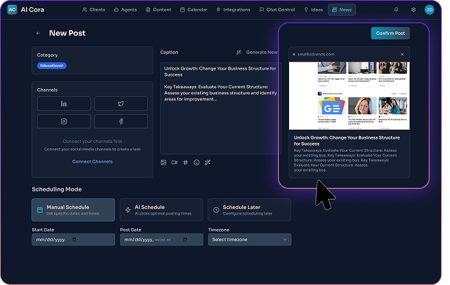 Why spend countless hours creating and scheduling content manually when AICora can do it faster, smarter, and more profitably?