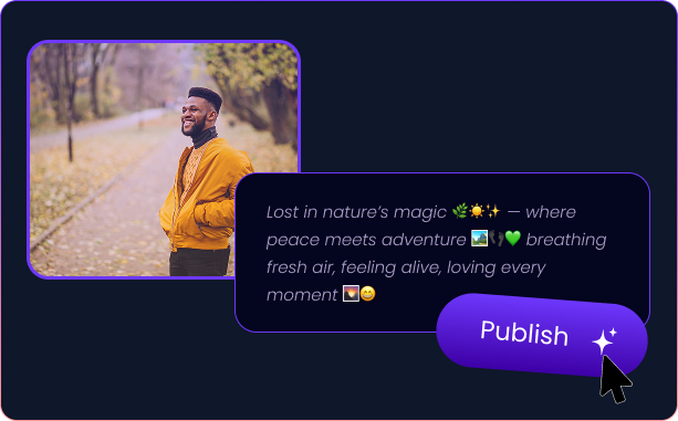 AI automatically enhances posts with emojis, hashtags, and media—boosting engagement and making content stand out.